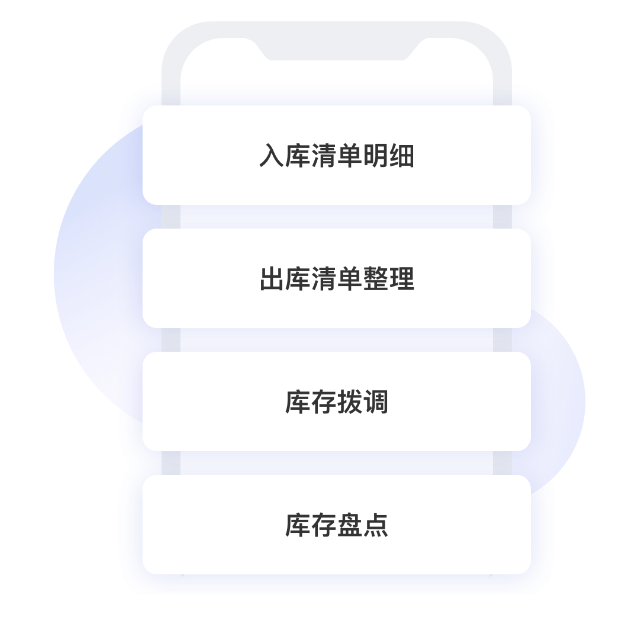 入库单 — 出库单 — 库存调拨 — 库存盘点