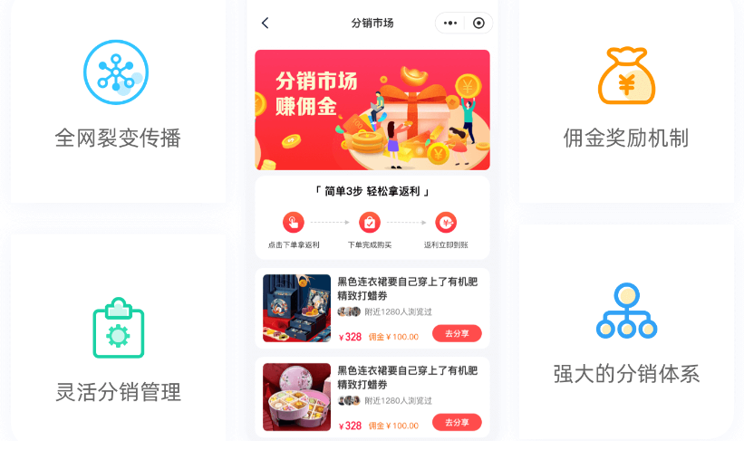 成熟的三级分销模式,裂变推广,帮助您更快速搭建完善的营销体系